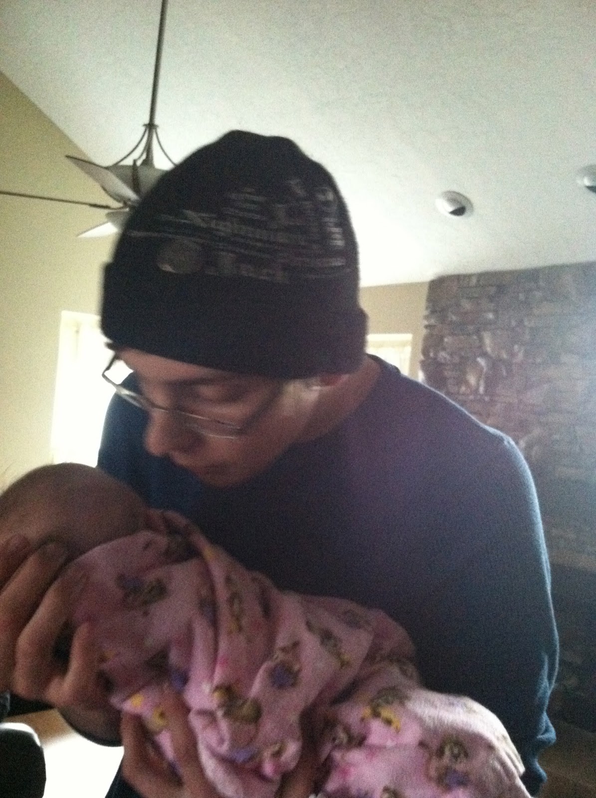 | Love this candid photo! Nick had some time all by himself with reese it was super sweet to catch that moment! |